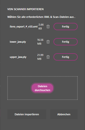 Zunächst müssen Sie die über den Scanner gespeicherten Dateien (XML, STL, PLY,…) auswählen.