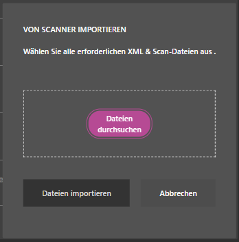 In diesem Schritt werden die im Scanner-Import enthaltenen Dateien hochgeladen und der Benutzer hat die Möglichkeit, weitere Dateien zu ergänzen.